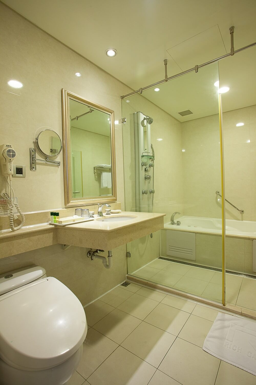 客室施設:ミネラルウォーター、"インスタントコーヒー/ティーバッグ"、WiFi、有線LANインターネット、電気ポット、スリッパ、ヘアドライヤー、セーフティボックス、冷蔵庫、バスアメニティ、32インチ液晶テレビ、DVDプレイヤー、"110v/220vコンセント"、"PANASONICウォシュレット"、バスタブ、防災ライト
